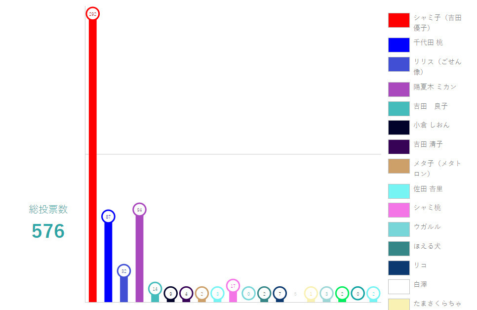 という事で一位はアニメきっかけで一気に人気も爆発したシャミ子でした!やはりこの結果の原因は…「シャミ子が悪いんだよ。」という事でしょうかw