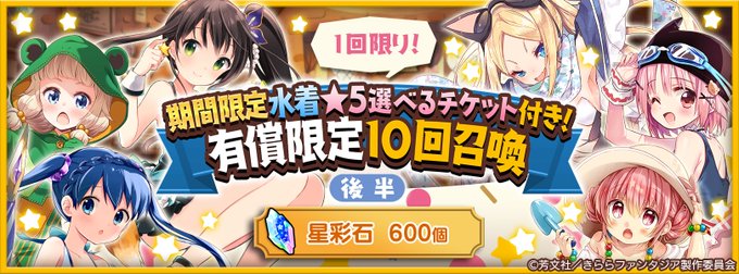 期間限定水着★5選べるチケット付き!有償限定10回召喚・後半