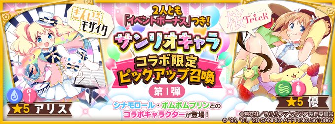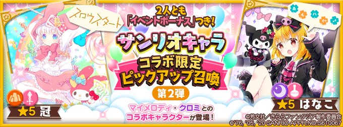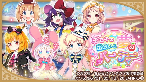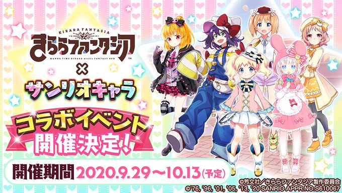 9/29より開催されるサンリオキャラコラボイベント「キセキの出会いと夢のパーティー」で活躍する6人のコラボ限定キャラクターをご紹介♪イラストはもちろんきらら作家陣の描き下ろし!イベント&召喚の開催をお楽しみに!#きらファンサンリオキャラコラボ pic.twitter.com/qlm71J3nhY