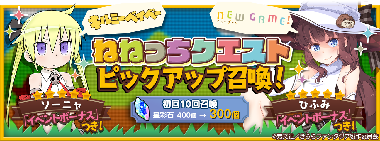 ★5「NEW GAME!」 滝本 ひふみ、★5「キルミーベイベー」ソーニャが登場