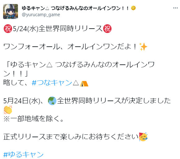 — ゆるキャン△ つなげるみんなのオールインワン!! (@yurucamp_game) April 12, 2023