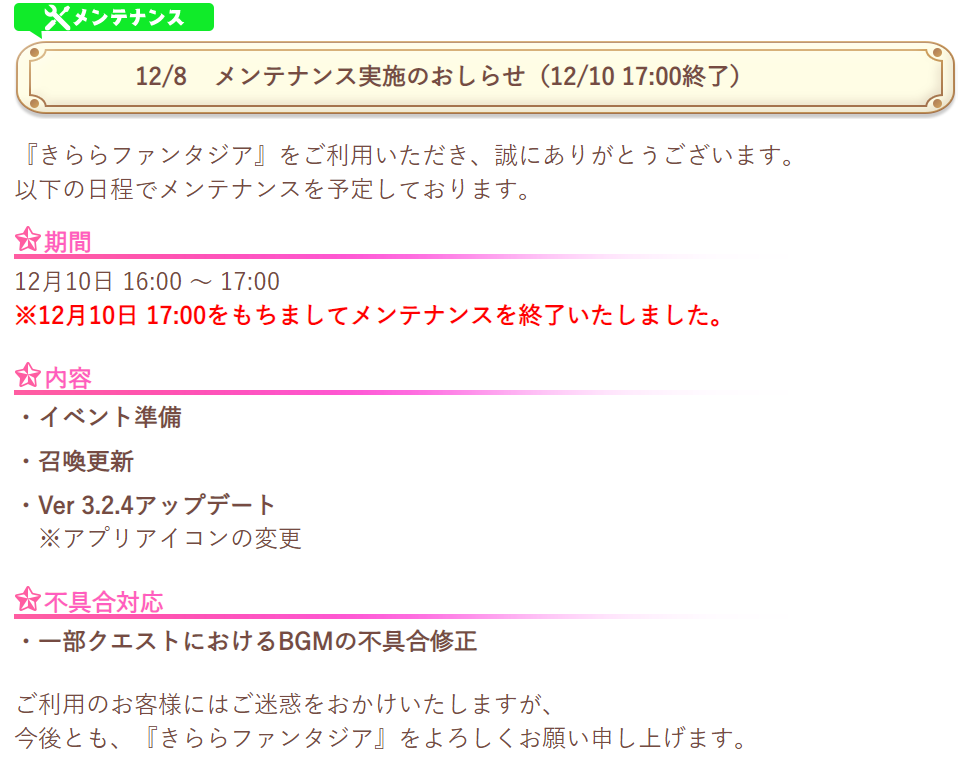 2023/2/28メンテナンス後、『きららファンタジア』オフライン版を公開予定です。ご利用予定のお客様は、事前にアプリのタイトル画面「オフラインデータ作成」を押下し、最新のデータ作成を行ってください。詳細はおしらせをご覧ください。#きららファンタジアhttps://t.co/LVaAwKiEBu
