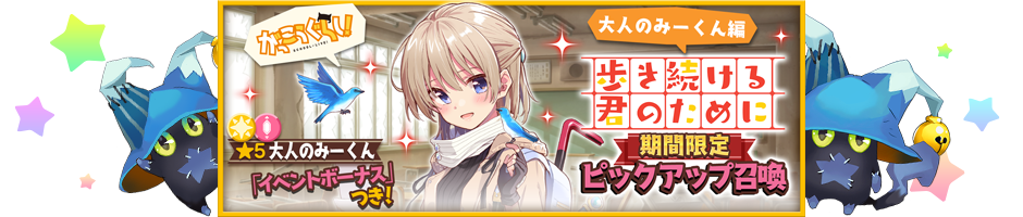 10月29日20:03 カテゴリ:きららファンタジアガチャ コメント数:12 コメント 【きらら】漫画版〇〇〇の限定ピックアップ召喚が11/1より開始!次回も頑張りますっ!【きらファン】 753 名前きららBBSの名無しさん:2021/10/29 17:22:12 ID:s9.BOALUpJ「きららファンタジアマンガ版限定ピックアップ召喚」開催期間11月1日 0:00 ~ 11月9日 23:59ピックアップ対象キャラクター★5 〇〇〇【マンガ版】(そうりょ 水属性)